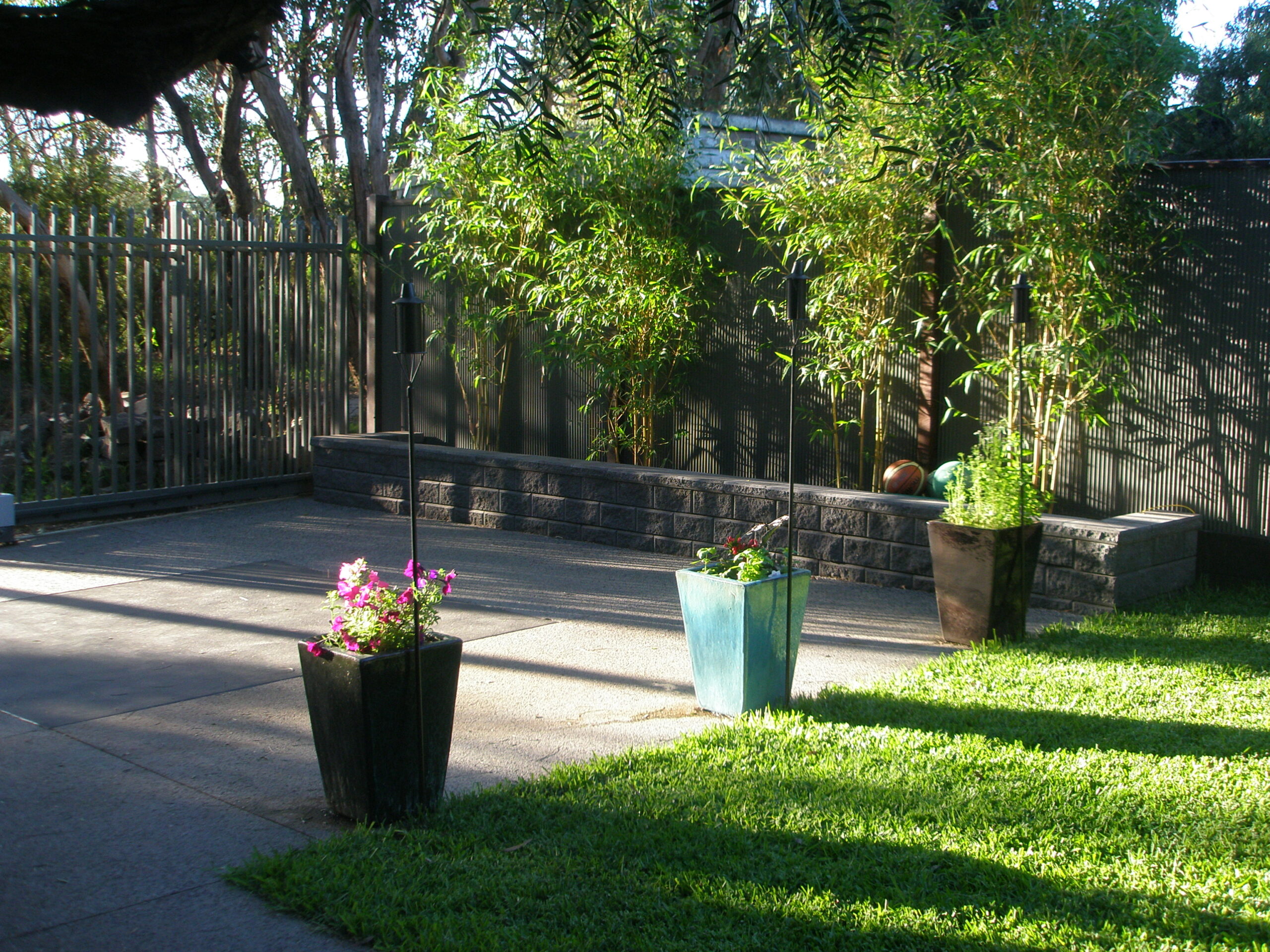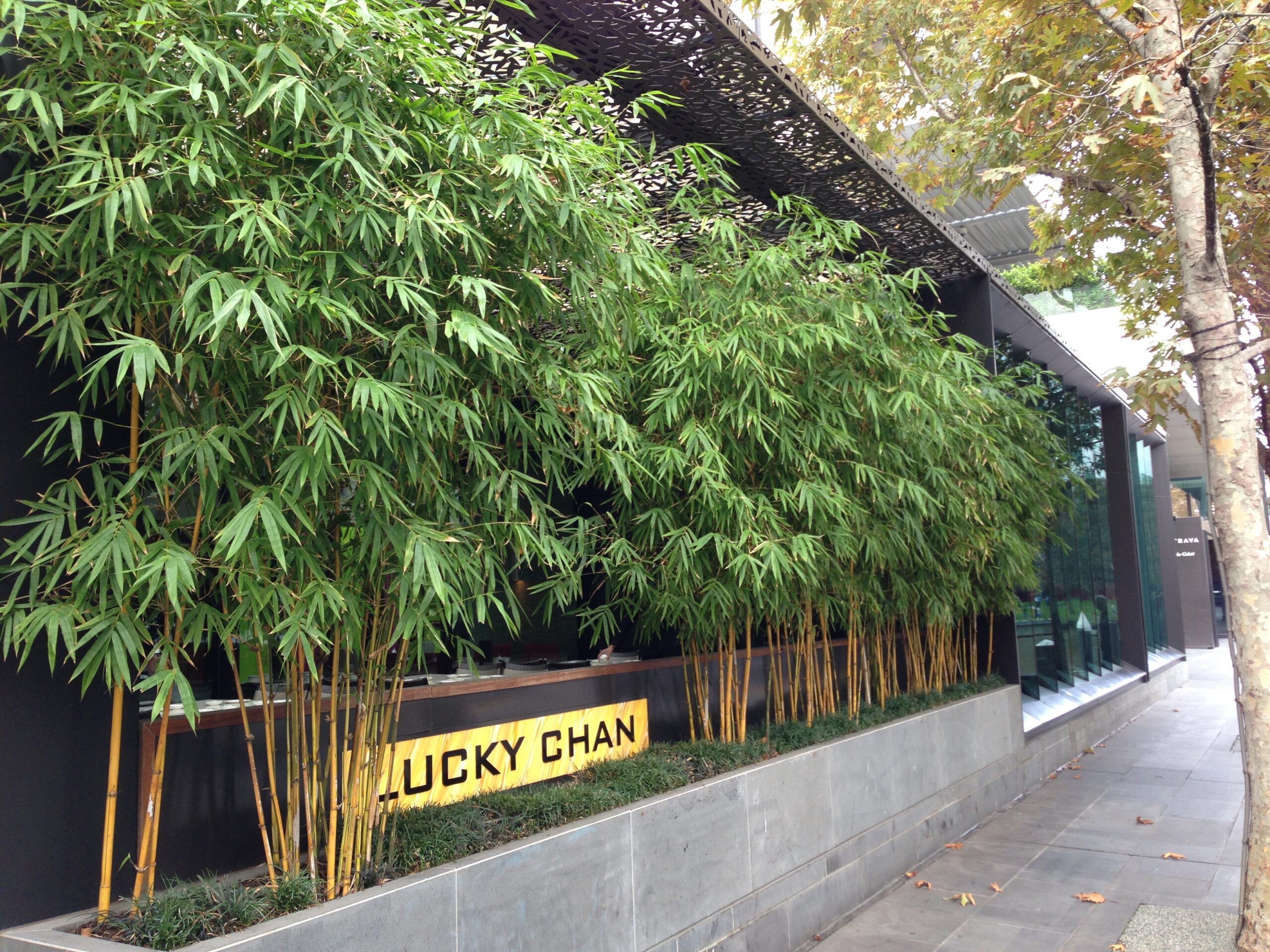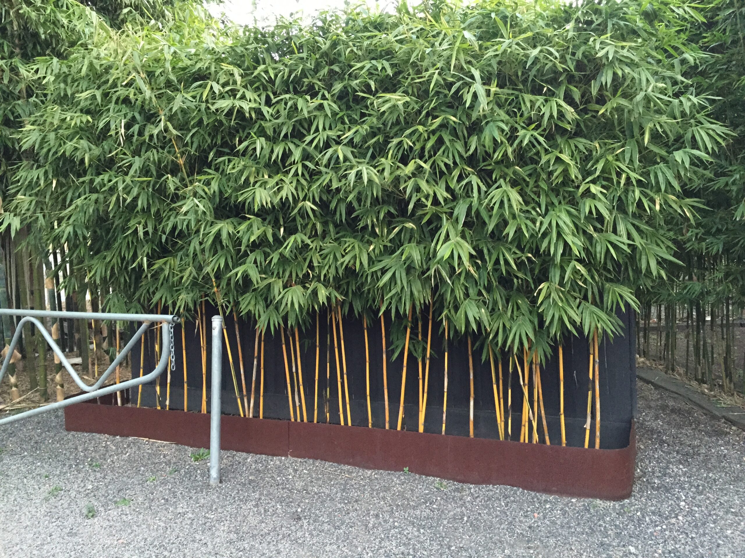 China Gold is a large ornamental bamboo featuring green and gold striped culms and bushy dark green foliage. China Gold will naturally grow up to 6-8 metres in height and can be easily trimmed down in height if need be (read maintenance tips here). This is one of the only ‘large’ bamboo species that can be maintained into very narrow garden beds or pots & troughs!