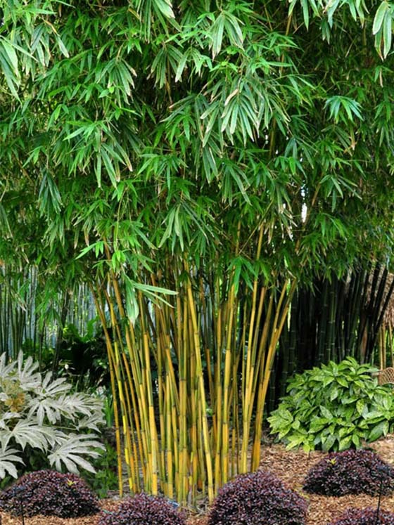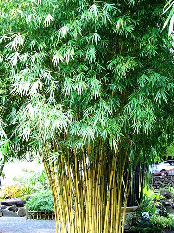 This versatile bamboo maintains dense foliage from top to bottom, though it’s hard to resist trimming some lower leaves to showcase its golden culms. It can be hedged or shaped to suit your needs.