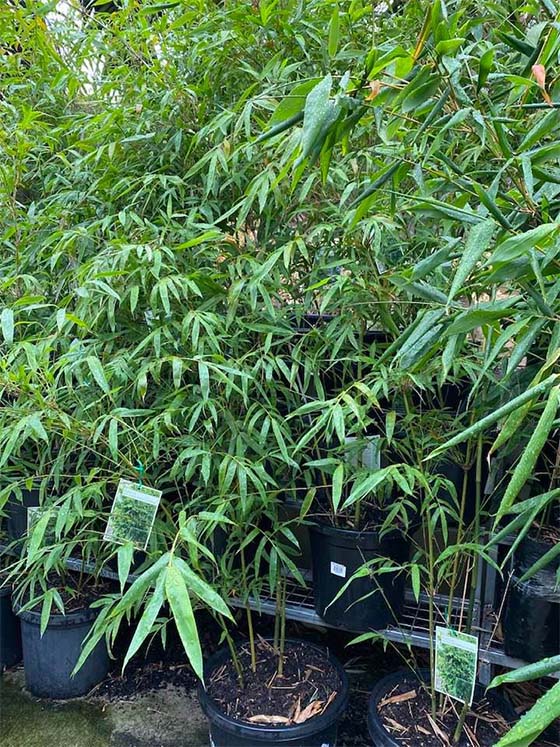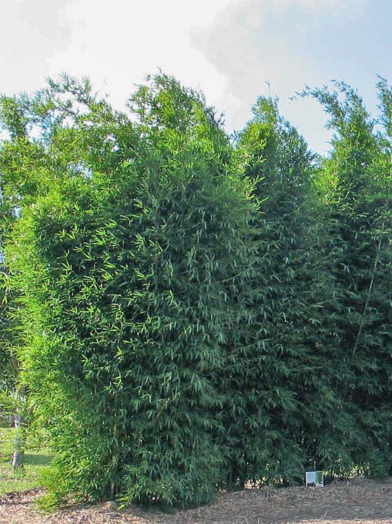 It has an upright growth habit (most bamboos fan out wide) with attractive bushy green foliage. The natural footprint size of the clump is 2mtrs however this species could be grown in narrower garden beds down to 1mtr, but wouldn’t quite get as tall. For very narrow garden beds, Gracilis is the best choice. Fusca will solve most height privacy issues fast!