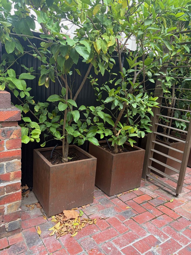 - Rustic weathered steel planters