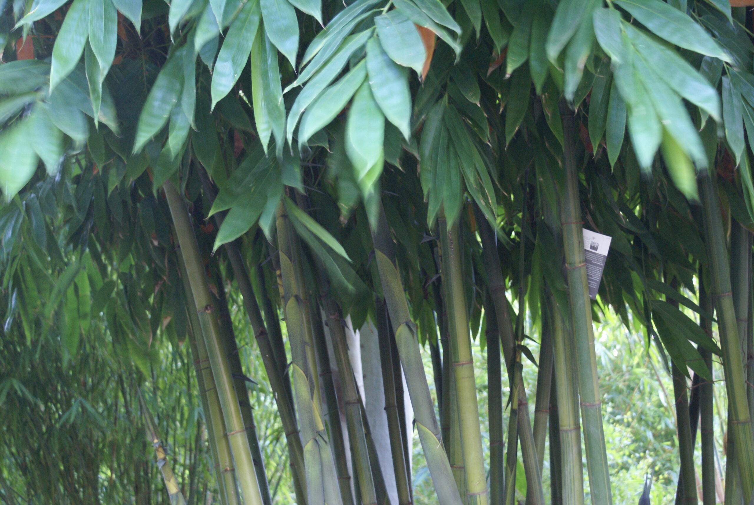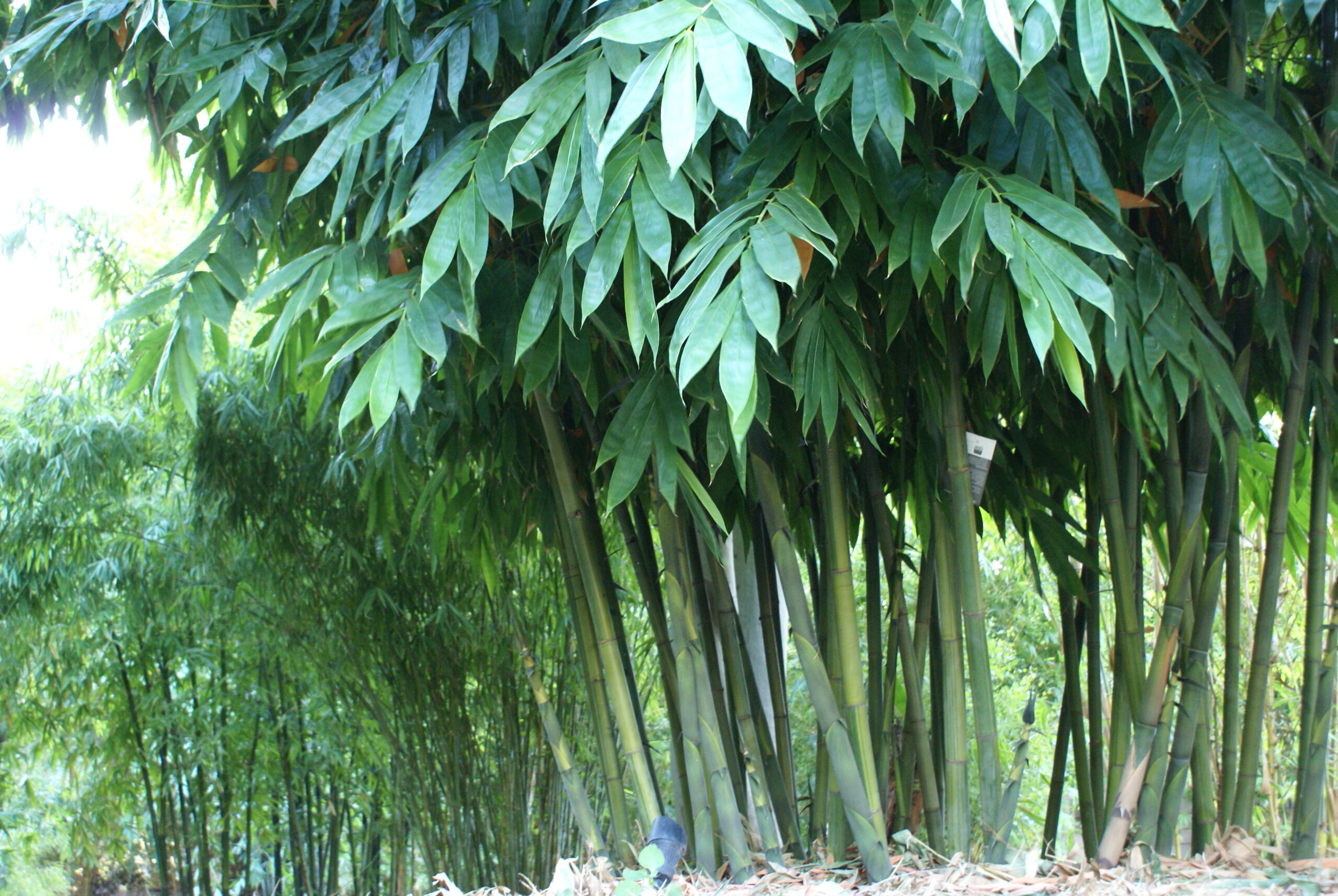Ghost bamboo is a large ornamental bamboo featuring powdery white grey culms and big tropical leaves. Ghost bamboo will naturally grow up to 8-12 metres in height and can be easily trimmed down in height if need be. Keep in mind it is a beautiful canopy shaped bamboo, so trimming it too short can impact the integrity of its shape.