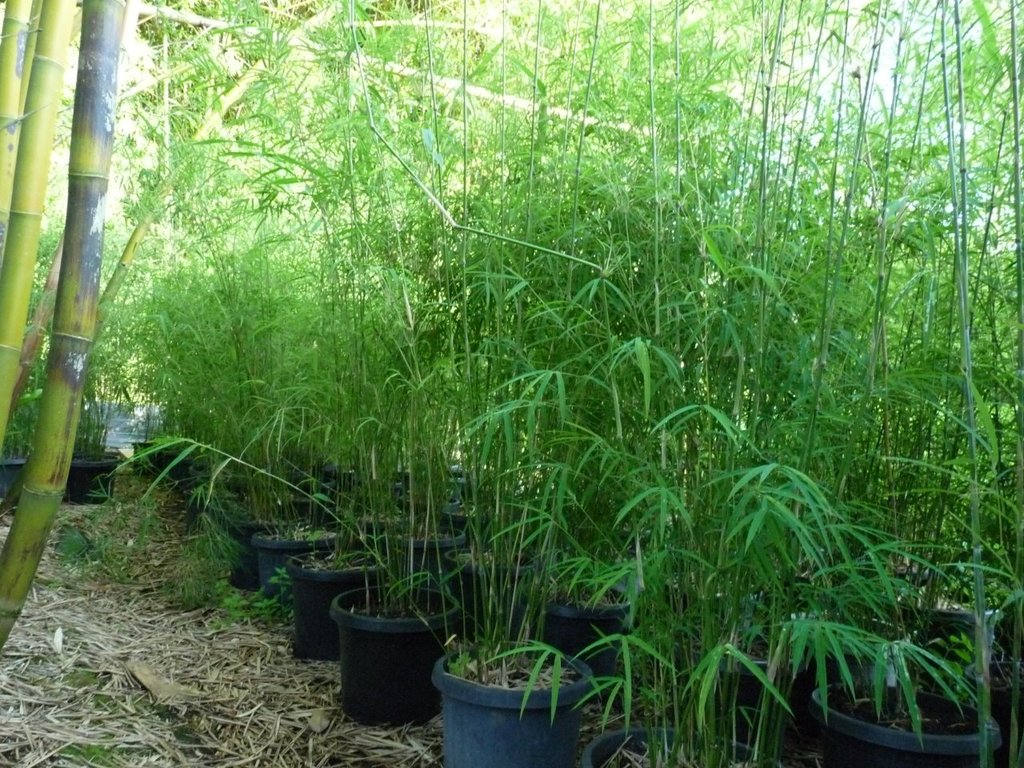 Pretty & delicate with soft feathery foliage – fine thin culms. Sometimes called Blue Bamboo. Ideal for courtyards – Japanese gardens. Shade areas and lower story plantings. Grows well in Sydney & Melbourne.